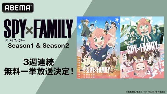 新しい未来のテレビ「ABEMA」は、大人気アニメ『SPY×FAMILY』Season 1&Season 2の全37話を、2024年11月11日(月)より3週連続で順次無料一挙放送いたします。