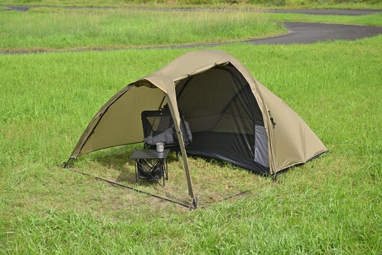 広大な前室部はチェアに座ってくつろぐことができる十分なスペースを確保、寝室部は1人用の就寝スペースと荷物を置いてちょうどいい大きさで窮屈感を全く感じません。