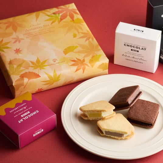 VANILLABEANSオリジナルの生チョコレートサンド「ショーコラ」の秋限定フレーバーが楽しめる期間限定アソートです。新作の「蜜芋」をはじめ、モンブランケーキを思わせる「ホワイトモンブラン」、定番人気のフレーバー「マイルドカカオ」「リッチミルク」とともに秋を感じる濃厚な味わいをお楽しみください。