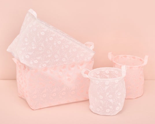 フロスト加工で上品に仕上げた「フラワー刺繍収納シリーズ」