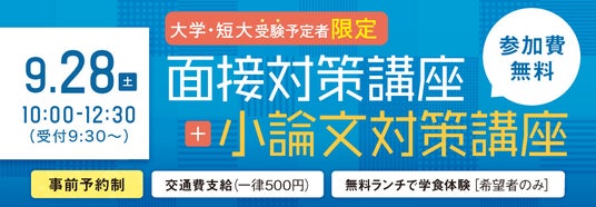 学校法人麻生塾/麻生専門学校グループは、総合型選抜での大学・短期大学入学を目指す高校生を対象とした「面接・小論文対策講座」を、無料で開催いたします。さらに、参加者には交通費として一律500円を支給いたします。