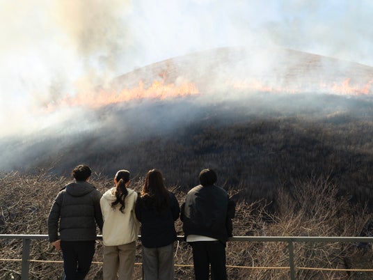 毎年2月の第2日曜日に執り行われる大室山の山焼きは、伊東の春を告げる風物詩として親しまれています。