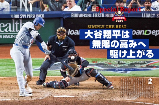 【編集長から】ロサンゼルス・ドジャースの大谷翔平選手が本塁打と打点の2冠を達成しました。今シーズンは元通訳の違法賭博問題という、これ以上ないネガティブなニュースからシーズンがスタート。しかし、そのハンディを全く感じさせず、あわや3冠王か、という快進撃が最終盤まで続きました。ポストシーズンへの期待は高まるばかりですが、アメリカも驚かせた大谷選手のレギュラーシーズンの活躍を、MLB専門記者スコット・ミラーのルポ/同僚ムーキー・ベッツ選手とロバーツ監督の各インタビュー/本誌コラムニスト・元CIA工作員でMLBウォッチャーでもあるグレン・カールのデータ分析記事「オオタニvs伝説の選手たち」……で振り返ります。(長岡)