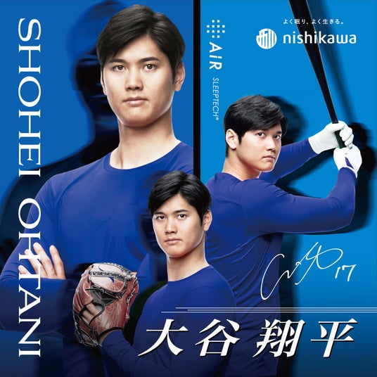 nishikawaは、ベストパフォーマンスのために質の高い睡眠にこだわりを持つ大谷翔平選手と2017年から睡眠コンディショニングサポート契約を結び、体に合った寝具の提供などを通じてコンディションをサポートし続けています。また、大谷選手には、愛用いただいているSLEEP TECH(R)ブランド[エアー]の広告に登場いただいています。