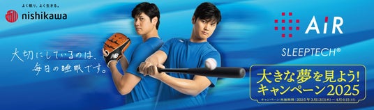西川株式会社(東京都中央区日本橋富沢町、社長:菅野達志、以下nishikawa)は、大谷翔平選手を起用した「大きな夢を見よう!キャンペーン2025」を3月13日(木)~4月6日(日)の期間、nishikawa公式オンラインショップおよび全国の[エアー]取り扱い店舗で開催いたします。抽選で、大谷翔平選手のオリジナルグッズをプレゼントすると同時に、送料無料キャンペーンも開催いたします。