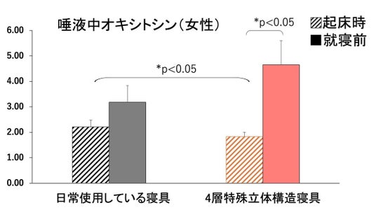 新たに、“幸せホルモン”と言われる「オキシトシン」の分泌についてのヒト臨床試験を行なった結果、睡眠の質が改善し、特に女性において心身ストレスの軽減と就寝前の唾液中の「オキシトシン」の増加がみられたことがわかりました。