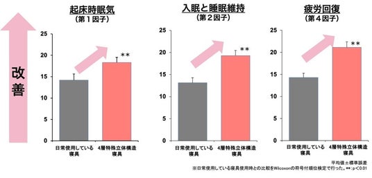 日本睡眠科学研究所と各大学と共同で、アンチエイジングの観点から4層特殊立体構造マットレス使用による睡眠の質への作用を検証してまいりました。
