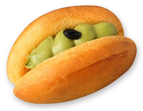 ほんのり甘いやわらかいパンに、宇治抹茶ホイップクリームをサンドし、黒豆をトッピング。口どけの良いパンと、ほろ苦抹茶クリームはお茶にもよく合います。