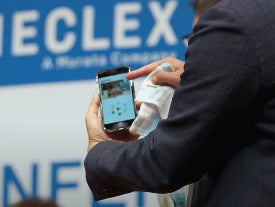■発表の様子カンファレンスでは、タオルに縫い付けられたブランドタグにスマートフォンをかざすだけでWebページにアクセスできる実演が行われ、参加者が新しい技術の利便性を実感しました。