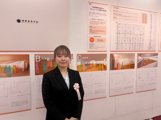 「不登校と高等学校の関係を調査し、不登校を経験した子がコミュニケーションを上手く取ることができるような高等学校を作成しました。私自身が不登校の経験から、不登校や通信制高校に通っているということで、偏見の目や声があることを感じ、同じような子たちが選択できる高等学校の幅を増やし、大概的なコミュニケーション力を育める学校を目指しました。仕組みとしては大学に近い、自分自身に行動の責任があり主体性を育めることを目標とし、教育に関する法律など様々勉強し、単位取得や科目の時間割など工夫したので、ぜひ細部まで見ていただきたいです。」