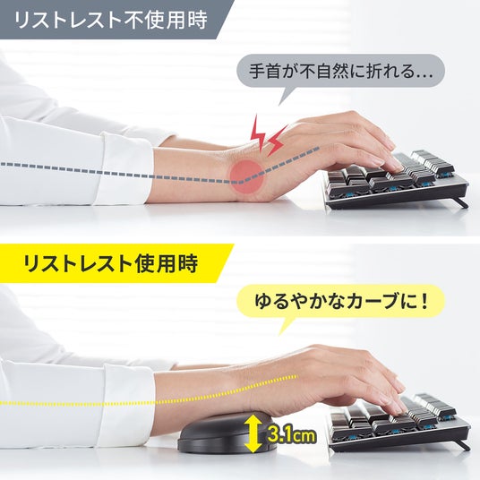 幅や角度を調整して手首の負担を軽減できる可変式リストレスト
