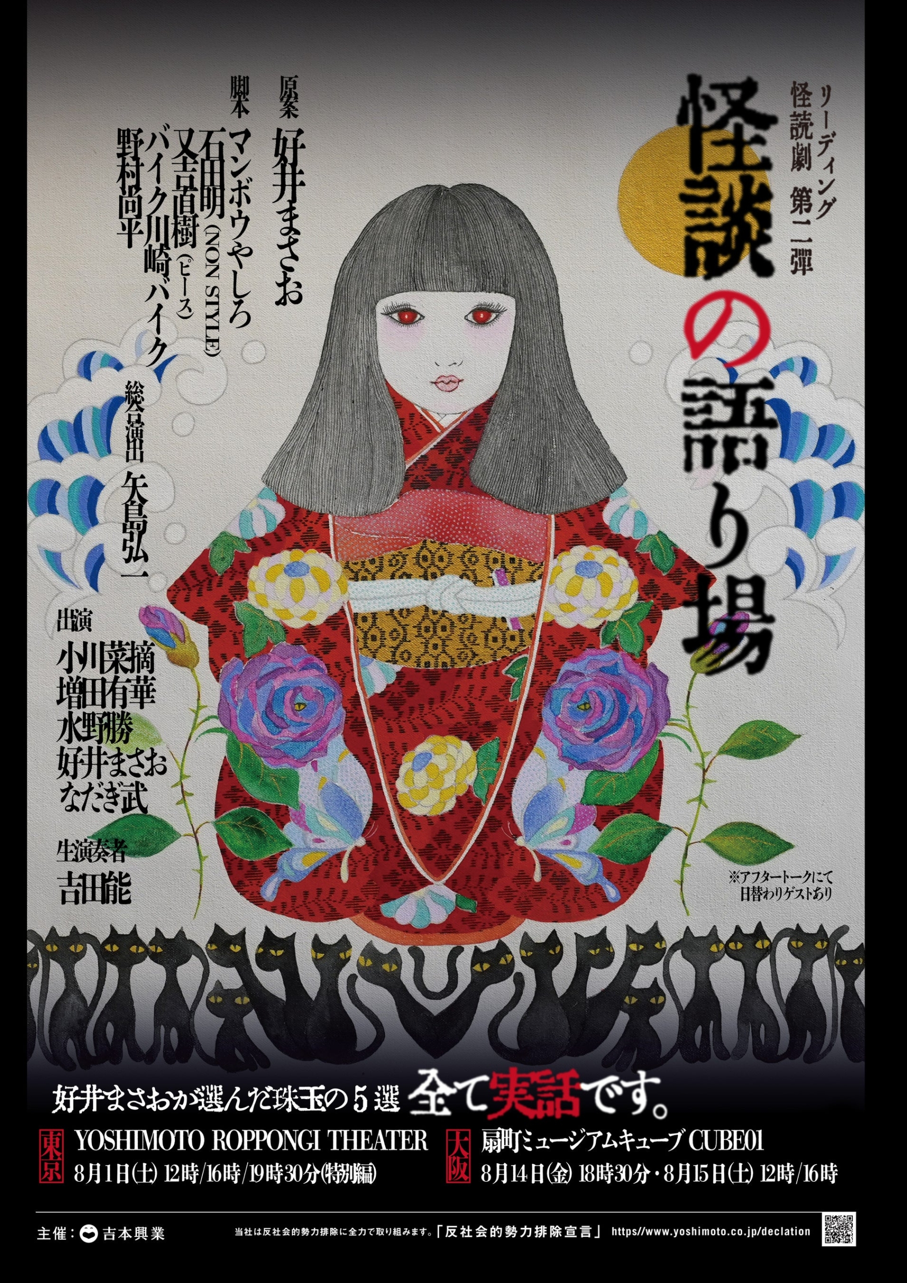 出演者には小川菜摘、増田有華、水野勝、好井まさお、なだぎ武ら実力派が揃い、そして生音奏者・吉田能(あやめ十八番)が音で心理的恐怖を増幅させます。
