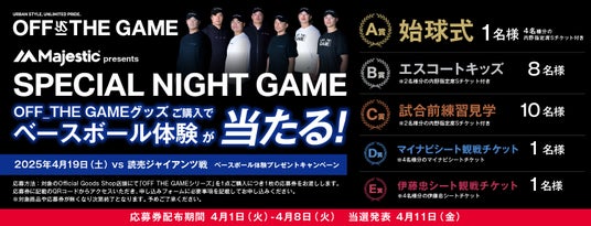 非日常が味わえる貴重なベースボール体験や、選手直筆サイン入りグッズが当たるこの機会に、ぜひ「OFF_THE GAMEシリーズ」をお楽しみください!