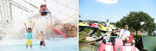 1Dayパスなら、プールと遊園地で遊び放題!屋内プールには、遠浅のプールやウォータースライダーなどアトラクションも多数。お天気の心配もありません。