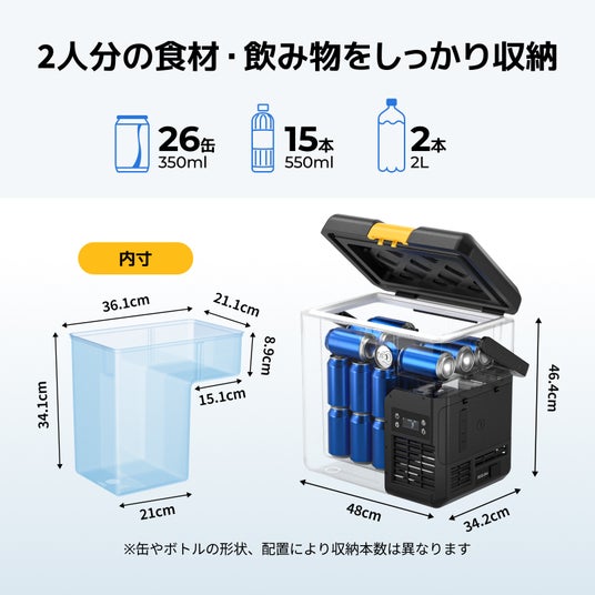 4.たっぷりの20L庫内容量 コンパクトなサイズながら、2人分の食材や飲み物をしっかり収納可能。キャンプや車中泊、日帰りレジャーにも十分な容量で、限られたスペースでも効率よく使えます。