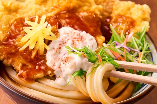 うどんは、茹でたての麺を丁寧に水できゅっと締めて一杯ずつご用意します。打ち立てだからこそ味わうことのできる、弾力があり、コシのあるうどんは、豊富な具材と相性抜群。さらに、北海道産の真昆布、複数の削り節など厳選された素材から引いた白だしにかえしを合わせたぶっかけだしが、打ち立てのうどんとのつなぎ役となり、全体を包み込みます。まぜることで豚天やタルタルソースの旨みが香り高いぶっかけだしに溶け出し、そこに打ち立てうどんをからめてすすると、至福の味わい。冷たいうどんと温かいうどん、どちらもおすすめです。
