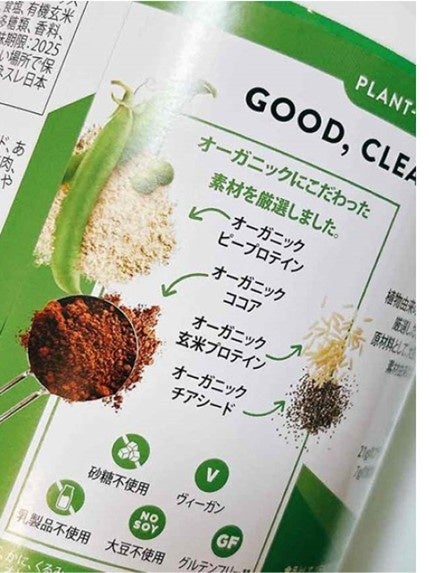 オーガニックプロテイン「Orgain」は、ピープロテイン(えんどう豆のたんぱく質)・玄米プロテイン・チアシードなど、厳選された原材料をバランスよく配合し、オーガニック認証を受けたプラントベースのプロテイン※4です。プラントベースの食生活を心がける方の栄養補給をサポートします。