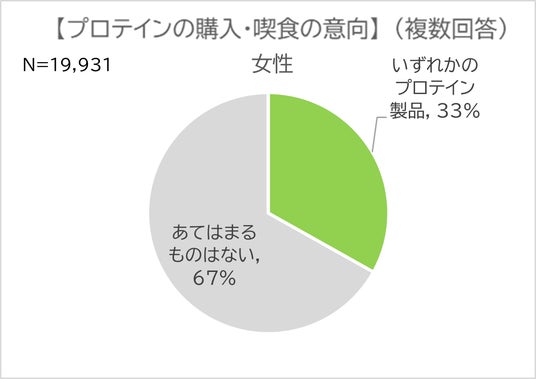 女性の33%が今後いずれかの形でプロテイン製品を購入・摂取したいと回答した。
