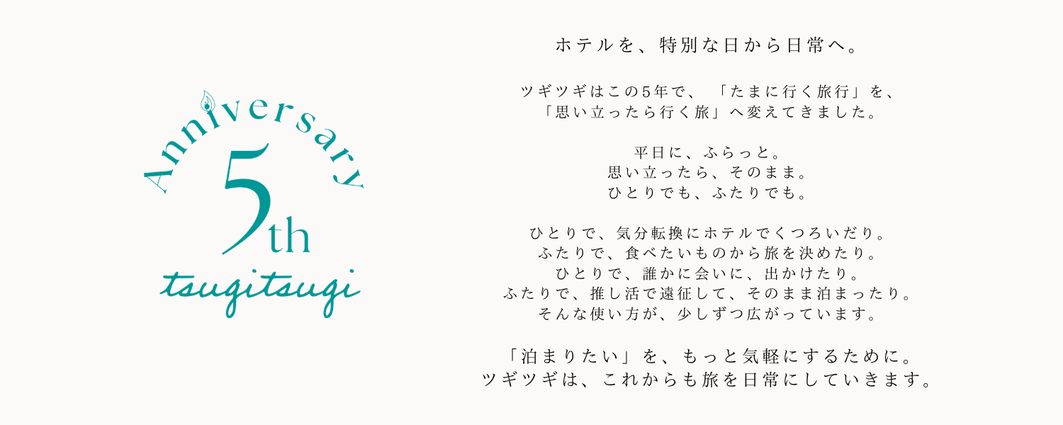 定額宿泊サービス「ツギツギ」サービス提供開始5周年を記念しておトクなキャンペーンを実施!