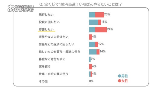 もし宝くじで1億円当たったら、いちばんやりたいことは?