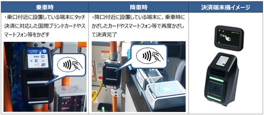 車両の乗降口付近に設置されたタッチ決済読み取り端末に、お手持ちのタッチ決済対応カードや同カードが設定されたスマートフォン等をかざすだけでご利用いただけます。