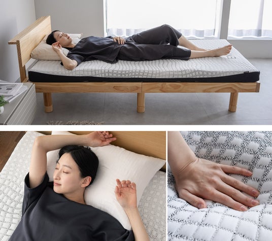 厚さ約10cmの2層構造で、床付き感がなく、敷き布団のように直接床に敷いて使えます。もちろんベッドでもご利用可能です。採用しているウレタン素材は高い復元率(約96%)を誇り、長期間使用してもへたりにくく、耐久性とサポート力を兼ね備えた設計です。