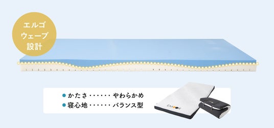 寝姿勢を整える新習慣――柔らかいのに沈みすぎない!人間工学発想のマットレス『エルゴノマットレス』を販売開始!エルゴウェーブ設計で腰の沈み込みを防ぎながら、自然な寝姿勢をキープします。