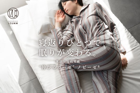 寝返りひとつで、眠りが変わる。累計5万枚突破、“伸びるガーゼ”の元祖が進化。ノビーゼ(R)︎「UNO」販売開始|パジャマ屋IZUMM