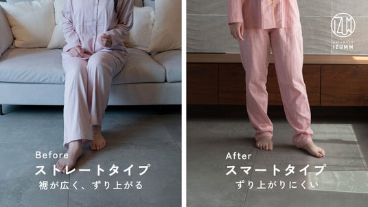 今回のリニューアルでは、裾がずり上がりにくい“スマートパンツ”への進化と、心を動かす新たな色柄展開により、着心地と装いの両面から睡眠体験をアップデート。
