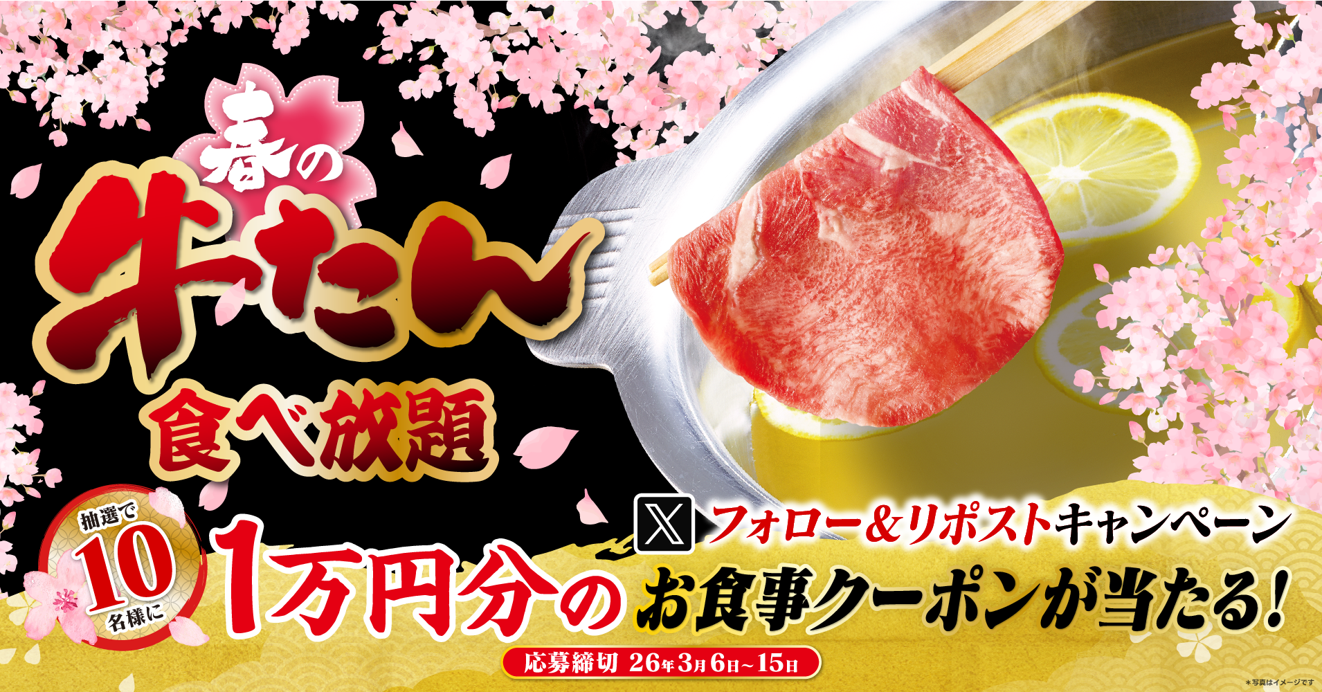 食べ放題のゆず庵で「1万円分」のクーポンがあれば、牛たんもしゃぶしゃぶもお寿司も、心おきなく贅沢に楽しめちゃいますね! 応募期間は3月15日までと短いので、今すぐリポストして運試しをしてみるのが吉です。春のお祝いシーズン、当選して「牛たん祭り」を開催できたら最高だ!