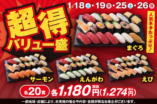 KOZOホールディングス株式会社の子会社である株式会社小僧寿しは、持ち帰りすし店「小僧寿し」にて、1月18日(土)・19日(日)・25日(土)・26日(日)の期間限定で『超得バリュー盛フェア』を販売します。(※店舗により未実施の場合がございます)