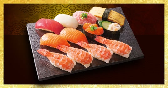 贅沢ネタ【特撰サーモン】と、ほんのり甘くて美味しい『えび』をたっぷり!お子様にも大人気ネタ♪