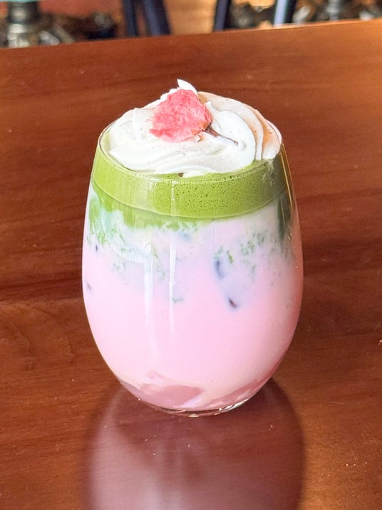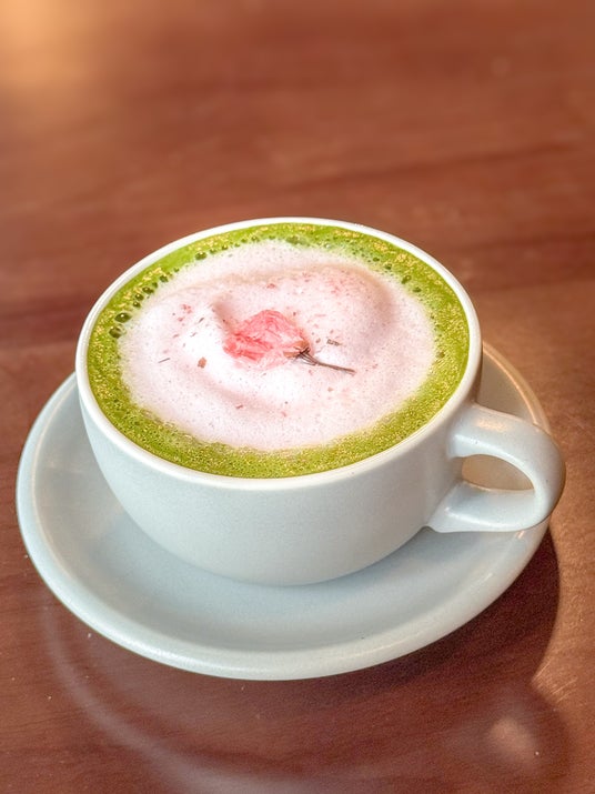 香り豊かな抹茶にほんのり桜の風味を添えたやさしい甘さの心落ち着く和ラテ。