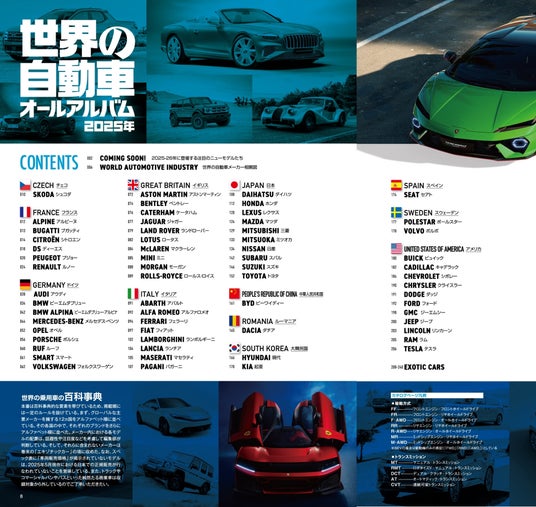 少量生産モデルも海外専用車種も日本未導入ブランドも完全網羅!43ヶ国262ブランド『世界の自動車オールアルバム 2025年』発売!