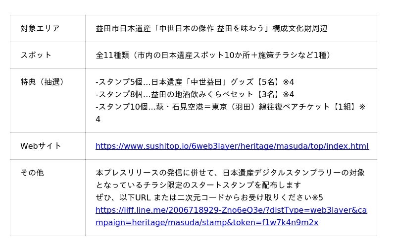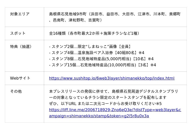 このたび、これらの仕組みを活用し、公益社団法人島根県観光連盟(島根県松江市、会長 鷦鷯 順、以下「観光連盟」)から島根県石見(いわみ)地域※2の観光スポットを、島根県教育委員会から島根県益田市の日本遺産を、それぞれ対象としたデジタルスタンプラリー業務を受託します。