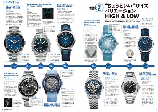 腕時計の祭典「WATCHES AND WONDERS GENEVA 2025」ほか、時計の本場スイス・ジュネーブでの取材から編集部が感じ取った3つのトレンド「進化する定番コレクション」「広がるサイズバリエーション」「高性能な新世代キャリバー」を、テーマに合致する代表的な新作ウオッチとともに掲載。それらが、このタイミングで“ベストバイ”である理由についても解説しています。また、創刊25周年特別企画として、巻頭特集内に「バックナンバーで振り返る25年の腕時計のトレンド史」も掲載。長年の時計ファンには懐かしく、最近になって時計に興味を持った方には興味深い内容となっています。