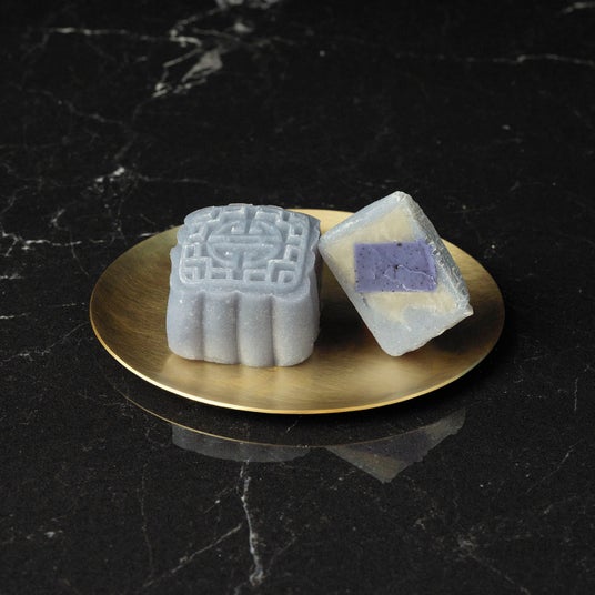 ブルーベリーをレモンピール入りのクリームチーズあんで包み込んだ緑豆ムーンケーキは、クリームチーズのコクとレモンの爽やかな酸味を楽しめます。