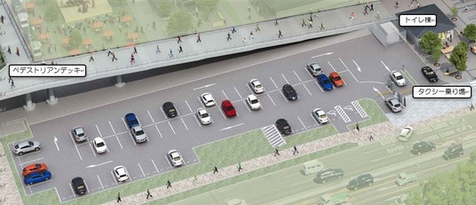 また、南側に観光バス乗降場、西側にタクシー乗り場を整備し、利便性向上を図りました。