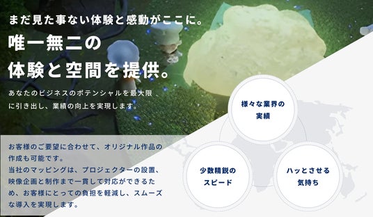 ・事業内容 :3DCG映像制作/プロジェクションマッピング/VR・ARコンテンツ制作/メタバース空間制作