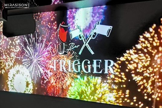 10月10日に名古屋で新しくオープンしたばかりのバー「TRIGGER」では、壁一面にプロジェクトマッピングを導入。花火や炎、富士山など、迫力満点のプロジェクションマッピングとともに、美味しいお酒や活気のある空間をお楽しみいただけます。