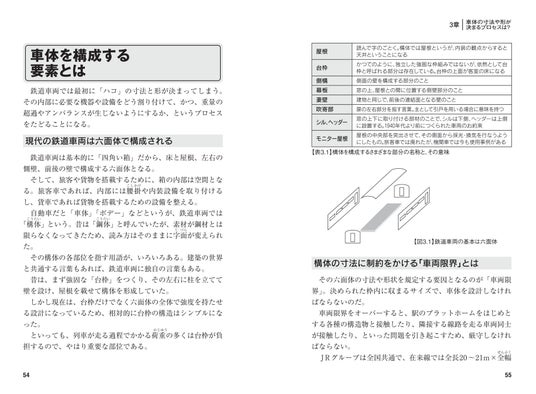 ――本書「まえがき」より 公共交通機関としての鉄道を利用する場合、私たち一般の利用者の目に触れるのは、駅設備と車両が中心となる。なかでも注目されやすいのは車両だが、利用者が接することができるのは、実際に完成して線路上を走っている車両だけだ。 しかし、車両が線路上を走るまでには、構想・検討・設計・製作という長いプロセスがある。その過程で、とくに構想や設計の担当者がどんなことを考えながら車両をつくり上げて、営業線に送り出しているのか。その経緯が表に出ることは少ない。 たまたま、筆者はそうした場面を取材した経験が何回かある。また、(今はやっていないが)過去には、趣味誌に載る図面を参考にしながら、自分で形式図を書くようなこともやっていた。 そうした経緯から、実際に図面上に線を引く前の段階で、あれこれと考えなければならないことがあるという事情の切れっ端ぐらいは、理解できたような気がしている。 そこで、「鉄道車両がどんな仕組み・構造になっていて、それはどのようにして決められ、つくられていくのか」を一冊の本にまとめてみたのが本書である。 利用者に快適に乗車してもらうための、鉄道事業者、車両メーカー、そして技術者たちの創意工夫とこだわりの数々をぜひ、知っていただきたい。 座席、ドア、窓、冷房・暖房・換気・送風設備、ドア上のモニター、荷棚、照明、トイレ、行先表示装置、台車やブレーキ装置……鉄道車両には、さまざまな設備や機器が搭載されています。そして、その設備や機器について、何をセレクトし、どうレイアウトするかには設計者の明確な意図があり、設計者の意図は車両のデザインのみならず、乗客へのサービス、さらには鉄道会社のイメージまでにも大きく関わってきます。 本書は、鉄道車両の寸法、配置、構造、材質など多岐に渡る項目から、「なぜ、そのようにデザインしたのか」「なぜ、この位置にこの設備が設置されたのか」を解き明かす「車両研究」の入門書。車両の形状やサイズ、窓の開閉の仕組み、座席のレイアウト、空調設備の位置、運転席やトイレの構造など、豊富な図解と写真の数々から、その「こだわり」をわかりやすく解説していきます。 ◎新幹線の窓が、新型車両ほど小さくされてきた理由 ◎ロングシートは27人掛けから1人掛けまで多種多様! ◎前後、左右、上下…車両の揺れを軽減する工夫とは? ◎車内のバリアフリー化は、どこまで進歩している? …など、快適な乗り心地、サービスを実現するための知られざる「凄い秘密」が満載の一冊です。 先端技術分野の知見を駆使して鉄道車両を多角度から解説する、かつてない『鉄道車両 探究読本』の発売にぜひご注目ください!