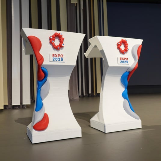 今回製作した演台・司会者台は、3月23日の大阪ヘルスケアパビリオン開館式、3月27日の警察と消防の専門部隊発足式で使用されました。万博開催期間中も様々な式典やイベントで使用される予定です。 【鴻池組 3Dプリンター技術 担当者コメント】 建設現場におけるマテリアルリサイクルについて、また新たな取り組みができたと考えています。今回は一品生産だったため3Dプリンターという手段をとりましたが、今後も案件に応じて柔軟な発想でマテリアルリサイクルに積極的に取り組んでいきたいと思います。 【鴻池組 工事現場事務所 勤務者コメント】 現場で作業員と根気よく集めた廃プラを原料に、3Dプリンターで資源循環できる演台を製作するということこそがこの取り組みの一番の根幹であり、多様な形の製品を廃プラから作れるということを未来社会の実験場という万博の場でアピールしたいと考えています。
