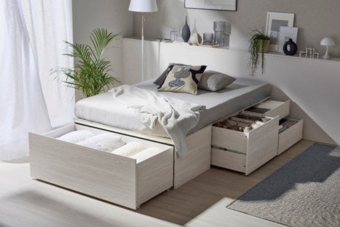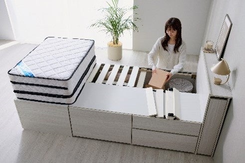 当社最大の引き出し容量約630L(※1)と収納容量約860L(※2)を実現!限られた空間を有効活用できる「超収納ベッド」発売