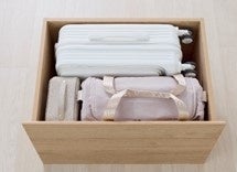 当社で初めて採用したフット引き出しに加え、33Lのキャリーケースが入る引き出し大、深型で使いやすい引き出し中、小物収納におすすめの引き出し小、1杯あたり60冊(※9)収納可能な収納宮(※10)(スライド本棚)を備えています。