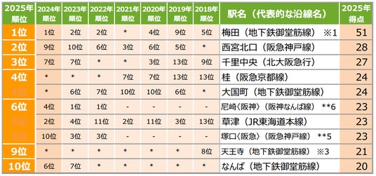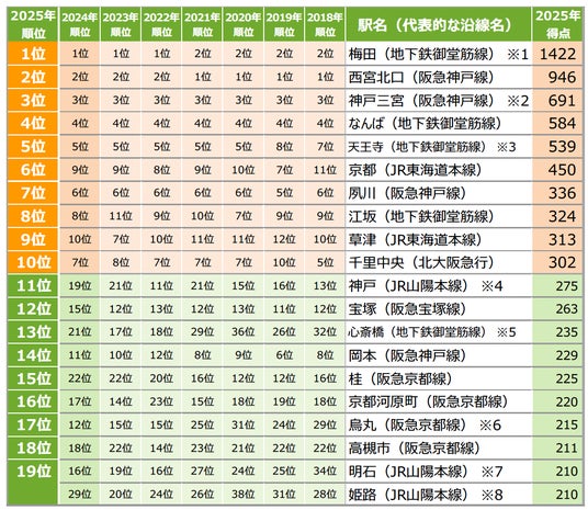 「梅田」が4年連続で1位/得点ジャンプアップランキング1位は「京都」/穴場な街として「桂」「大国町」が初めてトップ5にランクイン