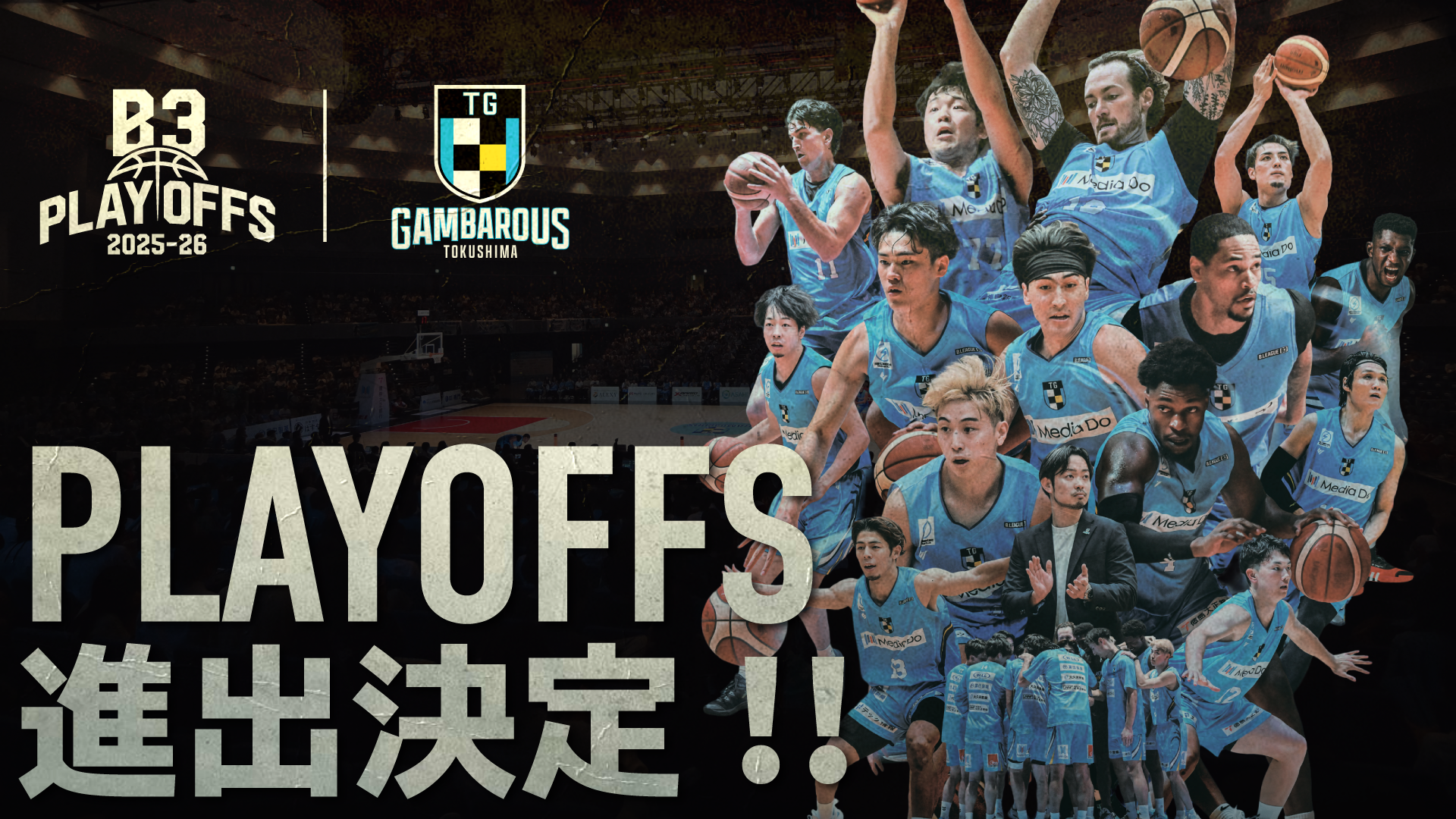 3月8日(日)に行われたB3リーグの試合結果により、徳島ガンバロウズの「B3リーグ プレーオフ 2025-26」進出が決定いたしましたのでお知らせいたします。