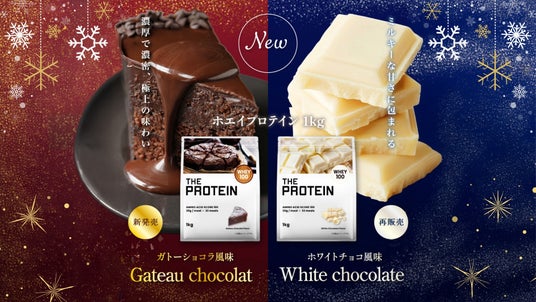 心までとろける冬の贅沢。THE PROTEIN(通称:ザプロ)からリッチな味わい〈ガトーショコラ風味〉が新発売!さらに、昨年即完売した大人気フレーバー〈ホワイトチョコ風味〉が数量限定で復活!!