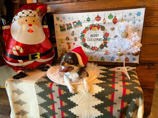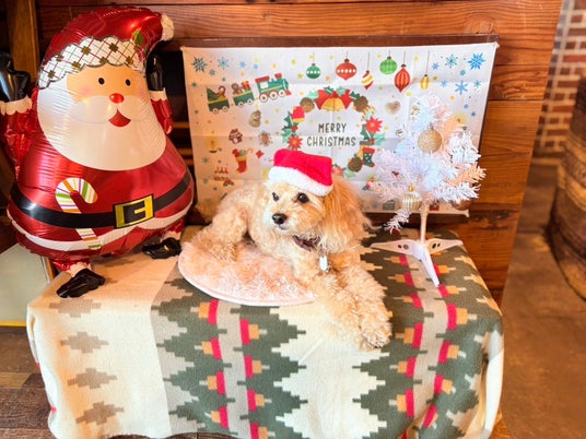 クリスマス仕様になったわんちゃん用の可愛いフォトスポットやペット専用フードメニューもご用意しております。ぜひ愛犬と一緒にお食事をお楽しみください。