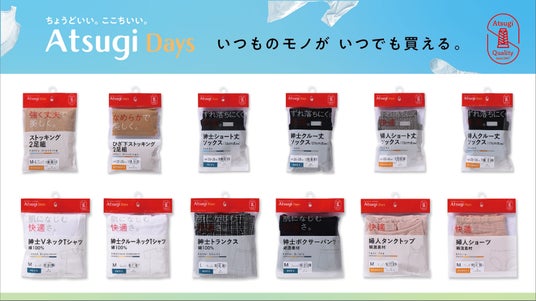 忙しい毎日にタイパ・コスパの新ブランド「Atsugi Days/アツギデイズ」発売 紳士・婦人のレッグ・インナーウェアをコンパクトサイズで