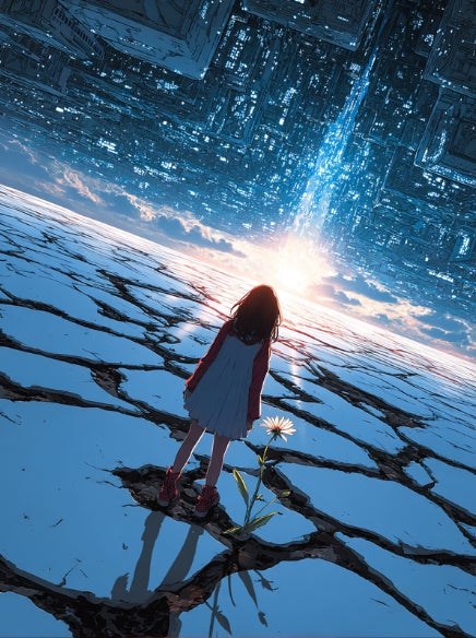 少女が見上げるのは、天に反転する巨大なデジタル都市。
